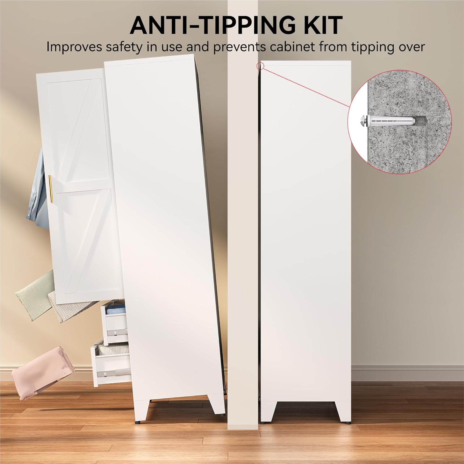 Introducing the COFaR 71″ Metal Wardrobe Closet, the perfect solution for all your storage needs. This stylish and functional freestanding armoire is designed to enhance your bedroom while providing ample space for your clothing and accessories. Crafted from durable white steel, this wardrobe features a sleek and modern design that complements any decor.