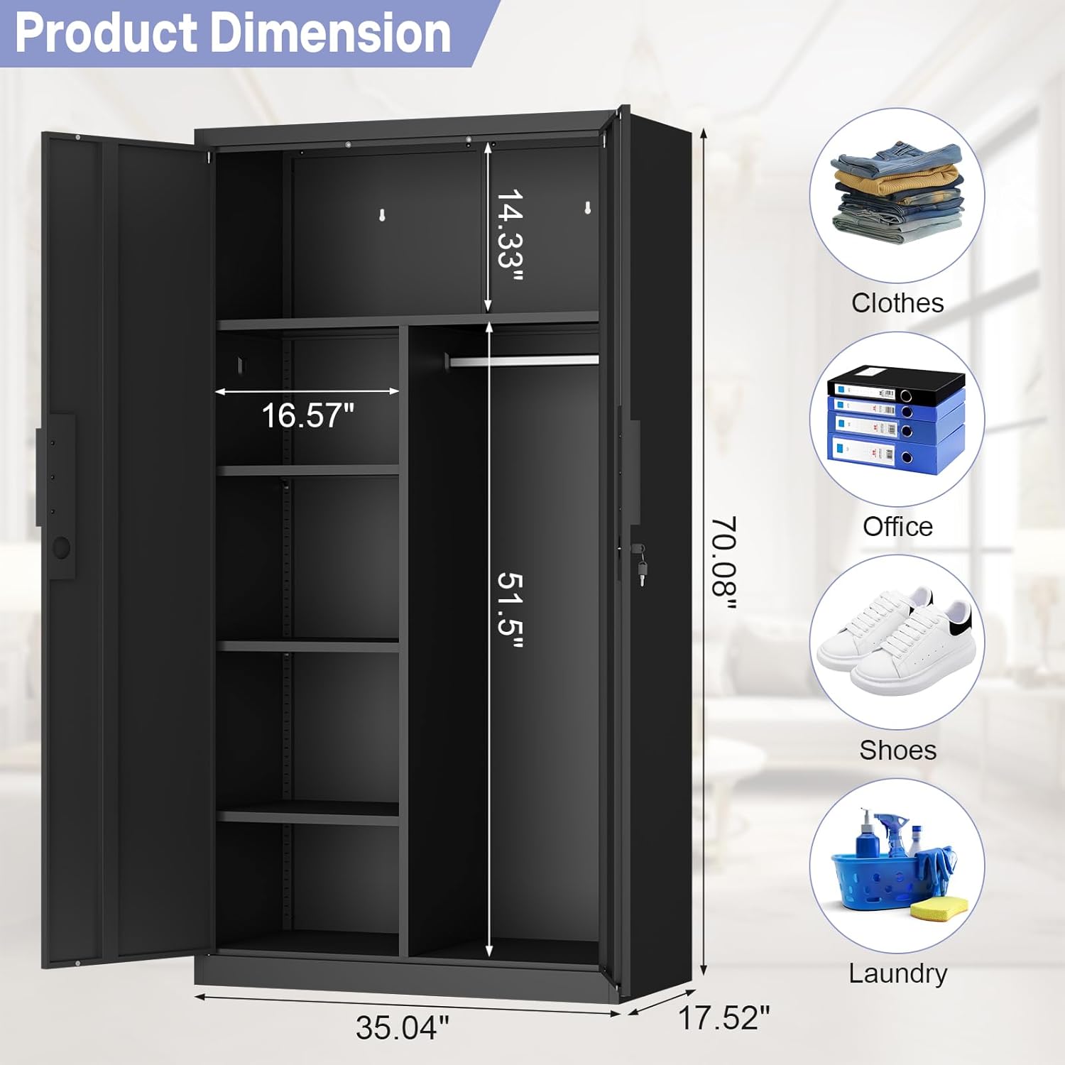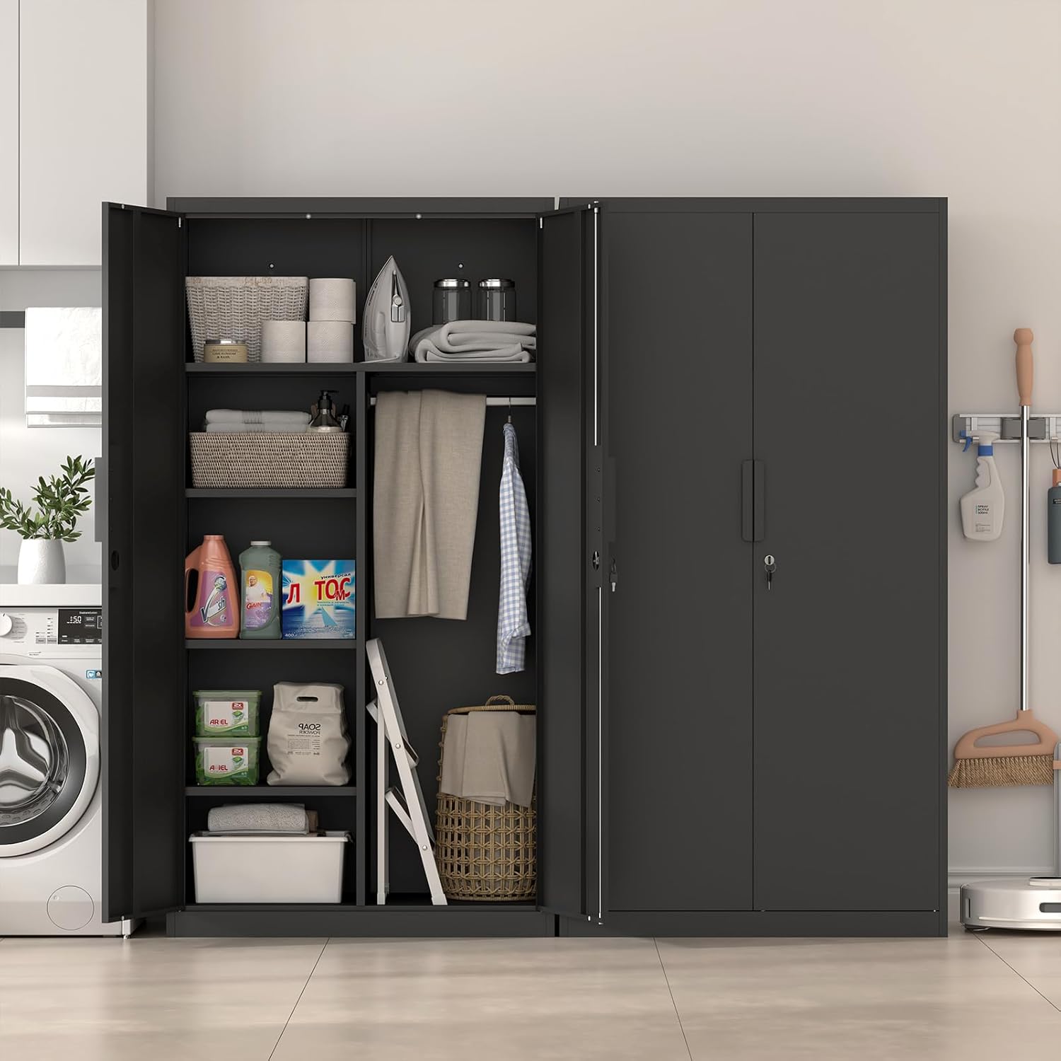 Durable and built to last, the IRONFFICE Metal Storage Cabinet is not only functional but also a smart investment for your home. Say goodbye to clutter and hello to organized elegance with this exceptional wardrobe cabinet. Upgrade your storage solutions today!